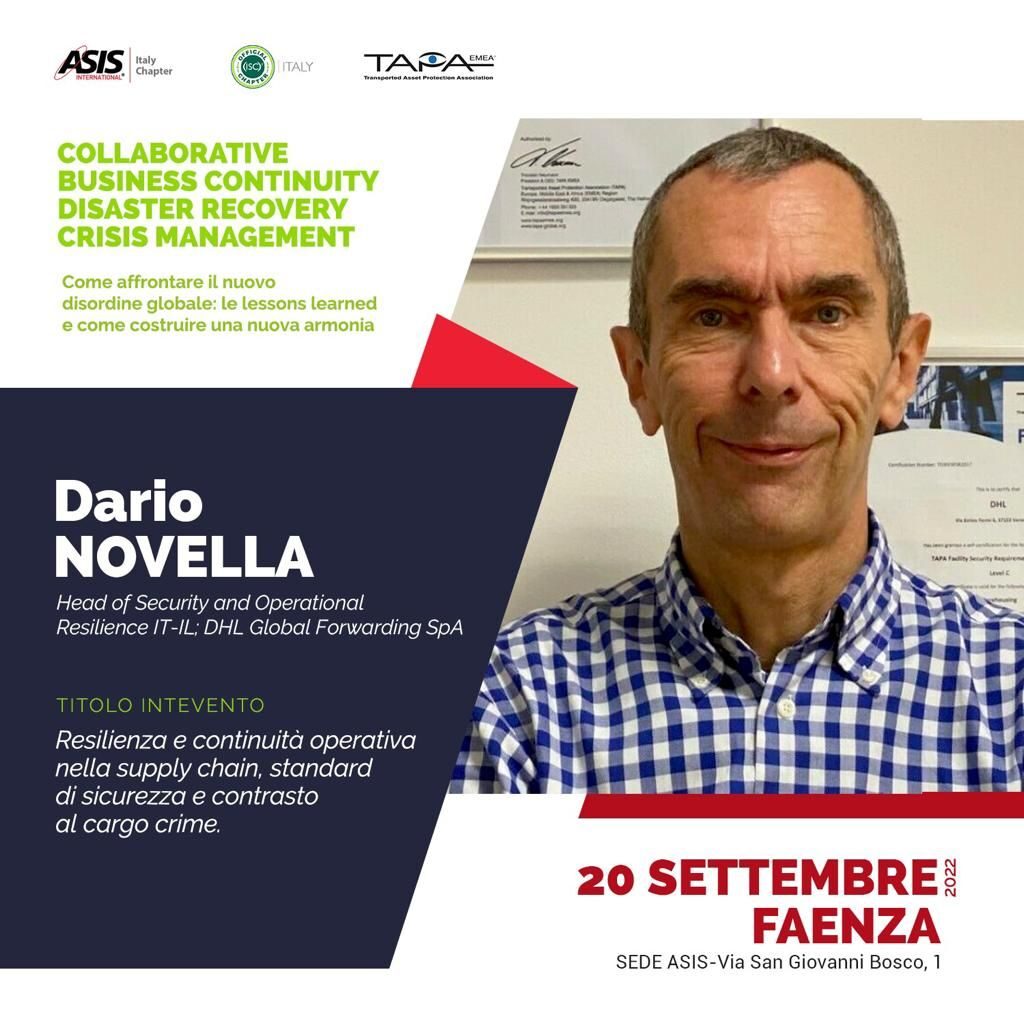 Il 4° speaker a Faenza il 20 Settembre 2022 sarà DARIO NOVELLA Security Manager DHL SAVE the DATE!