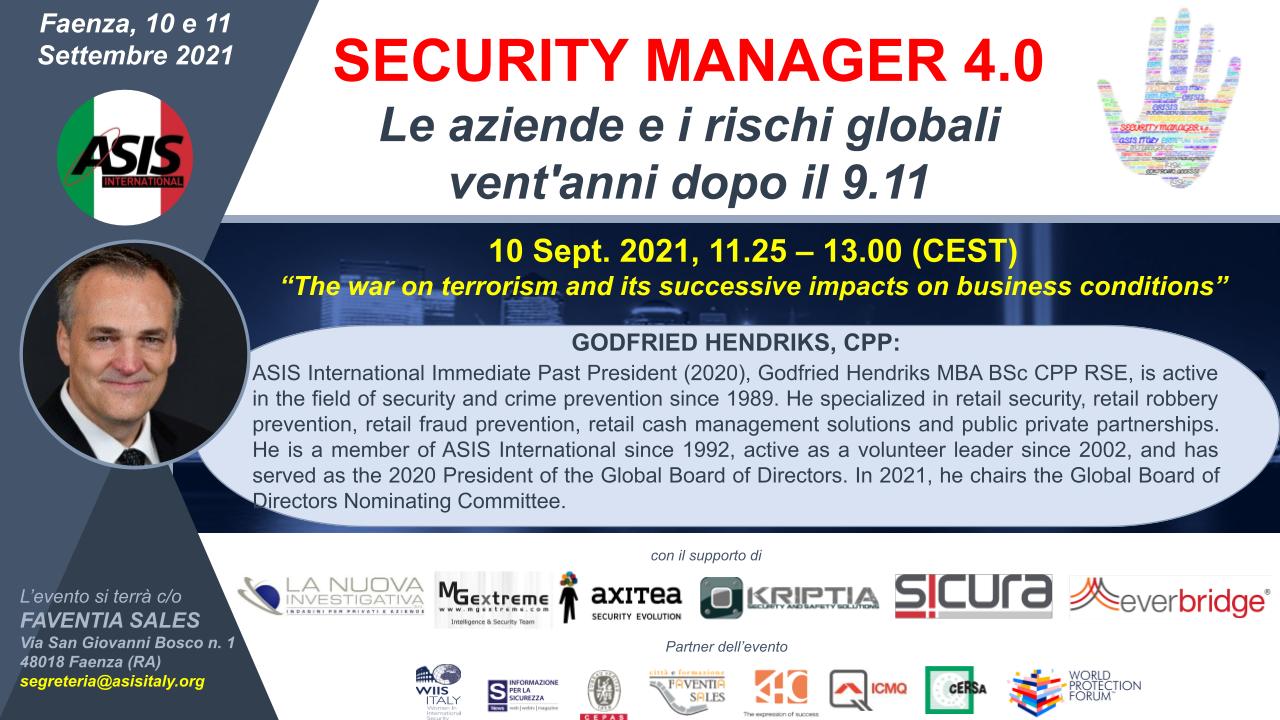 All’evento Security Manager 4.0 di #ASISItaly si aggiunge Andrea Lambiase CBCP CBCI, esperto di resilienza tecnologica e organizzativa e della security nelle organizzazioni complesse, che presenterà il suo speech che guarda al futuro dal titolo: “Strategie di oggi per la resilienza di domani: la gestione dei rischi complessi dopo il biennio 2020-21” Save the date: 10 settembre