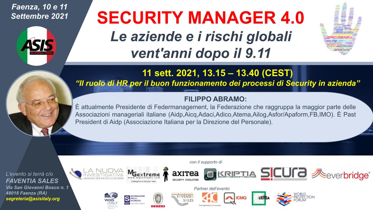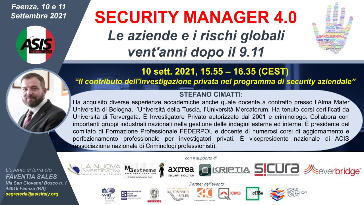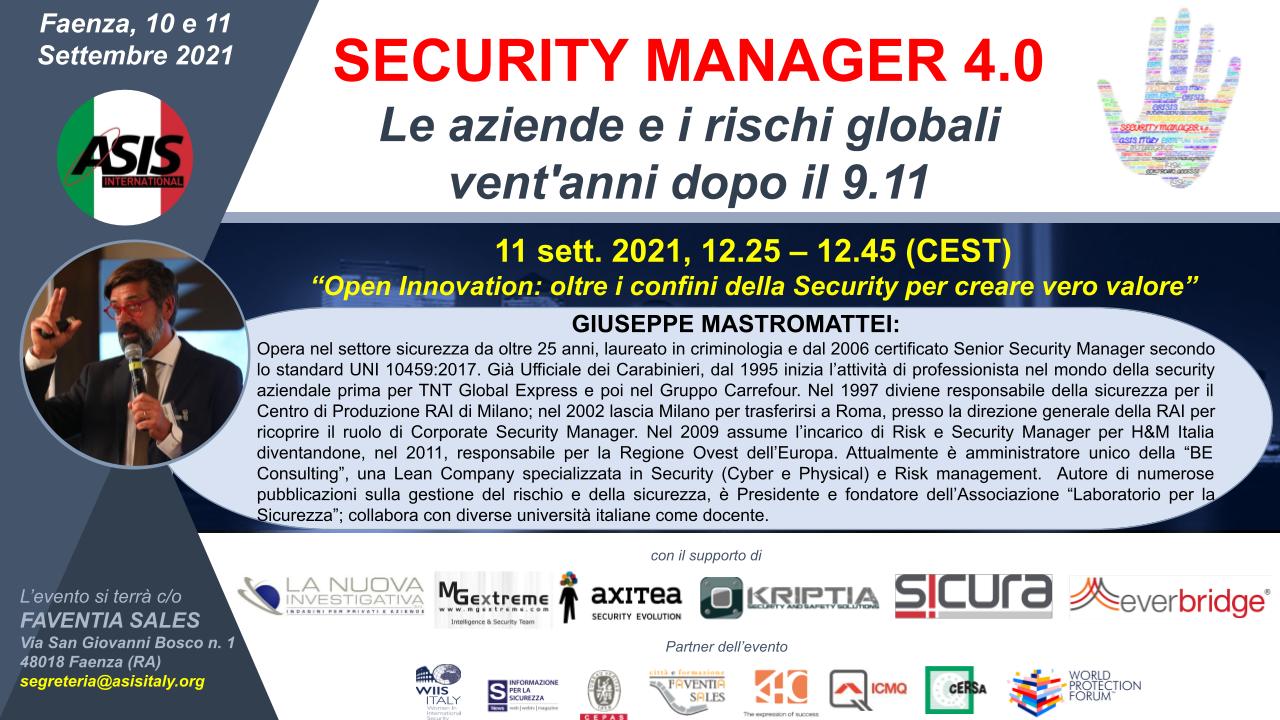 Al parterre di Security Manager 4.0 parteciperà anche Giuseppe Mastromattei, Risk, Security and Compliance Strategist, già certificato nel 2006 Senior Security Manager secondo lo standard UNI 10459. Ci parlerà del futuro della professione di Security Manager, un futuro che passa attraverso l’innovazione. SAVE the DATE, do not miss: 11 settembre 12.25 – 12.45 CEST. L’evento